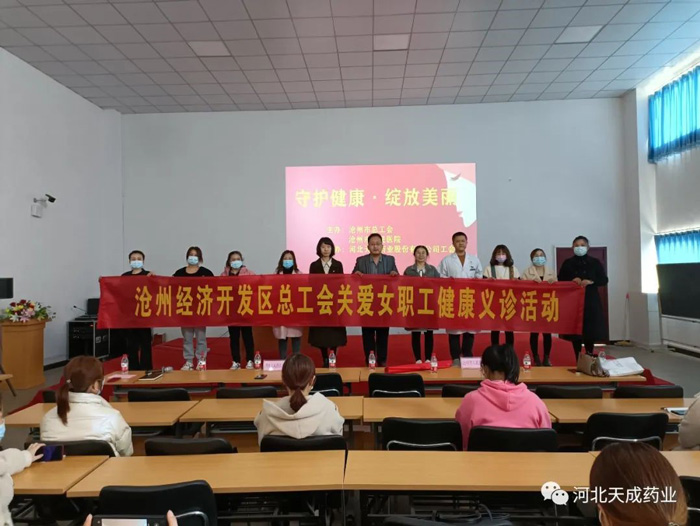 3月8日下午,公司工會聯(lián)合滄州市.總工會、滄州經(jīng)濟(jì)開發(fā)區(qū)總工會,特邀請滄州市人民醫(yī)院婦科專家開展“守護(hù)健康.綻放美麗”健康講座和義診活動,進(jìn)一步發(fā)揮“職工健康生活室”服務(wù)職工的作用,切實響應(yīng)國務(wù)院《健康中國行動(2019-2030年) 》發(fā)展戰(zhàn)略,提高廣大女職工自我健康管理意識,掌握健康知識,建設(shè)健康環(huán)境。